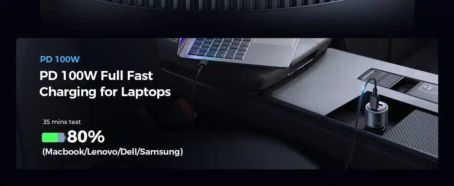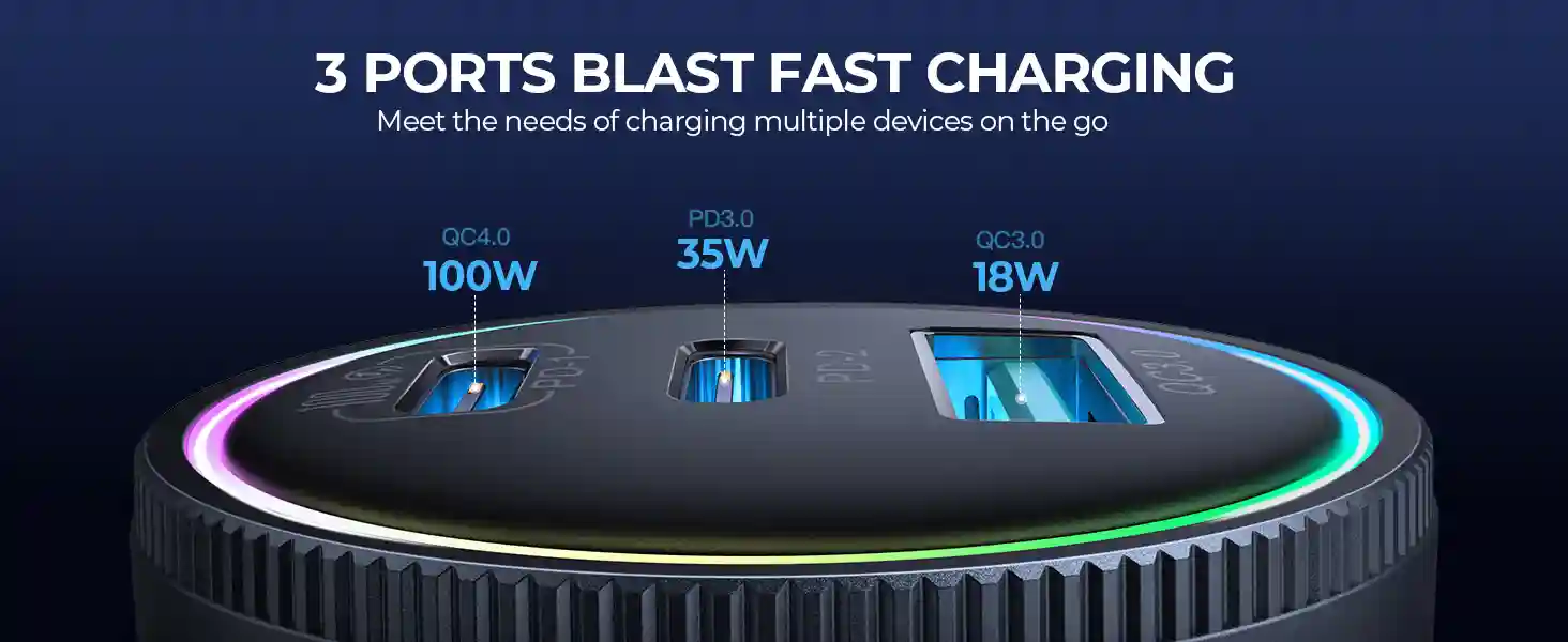- 145W Ultra-Fast Charging (PD 3.0 & QC 4.0 Super Fast Charging): Experience revolutionary charging speeds on the go. This car charger supports an impressive 145W